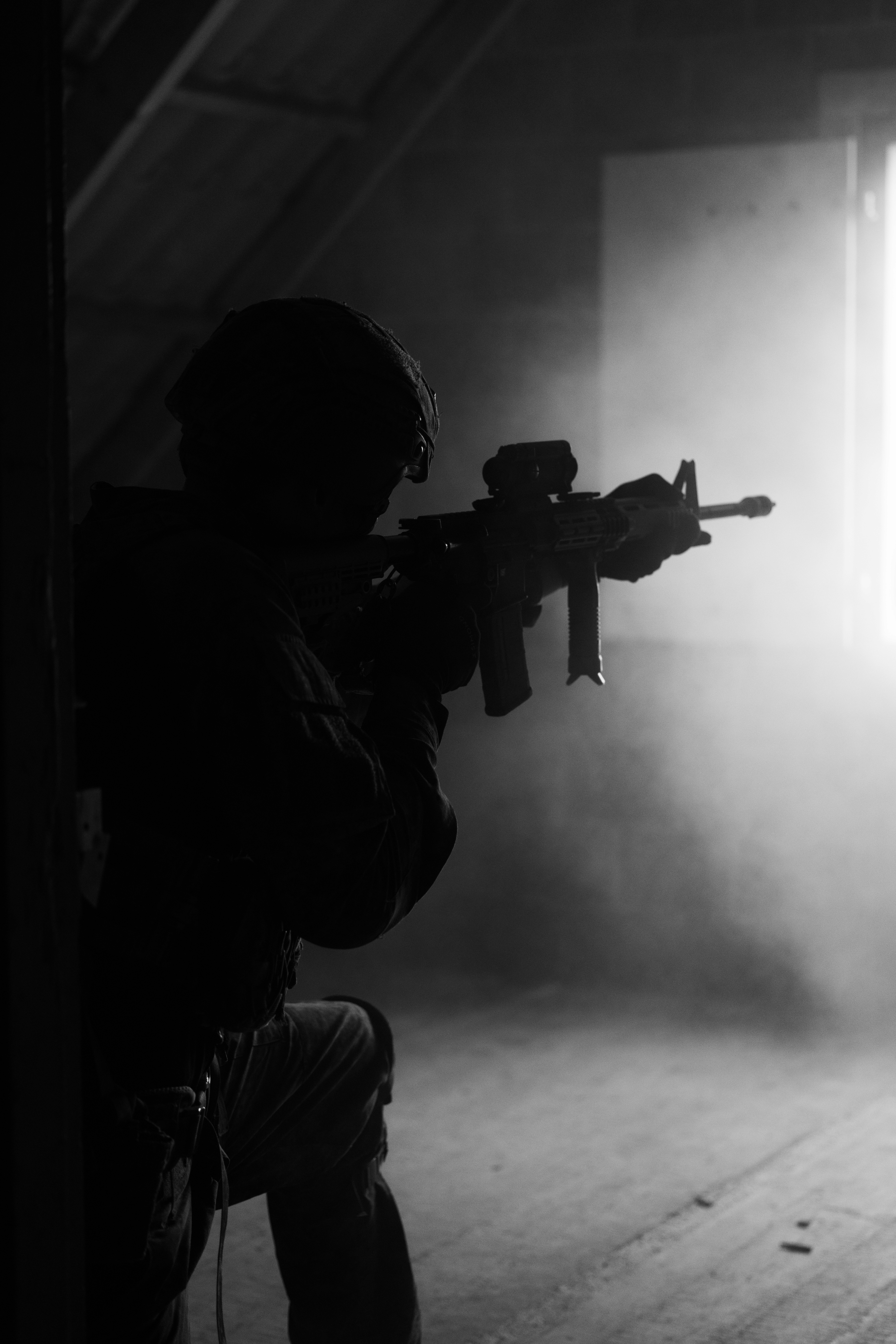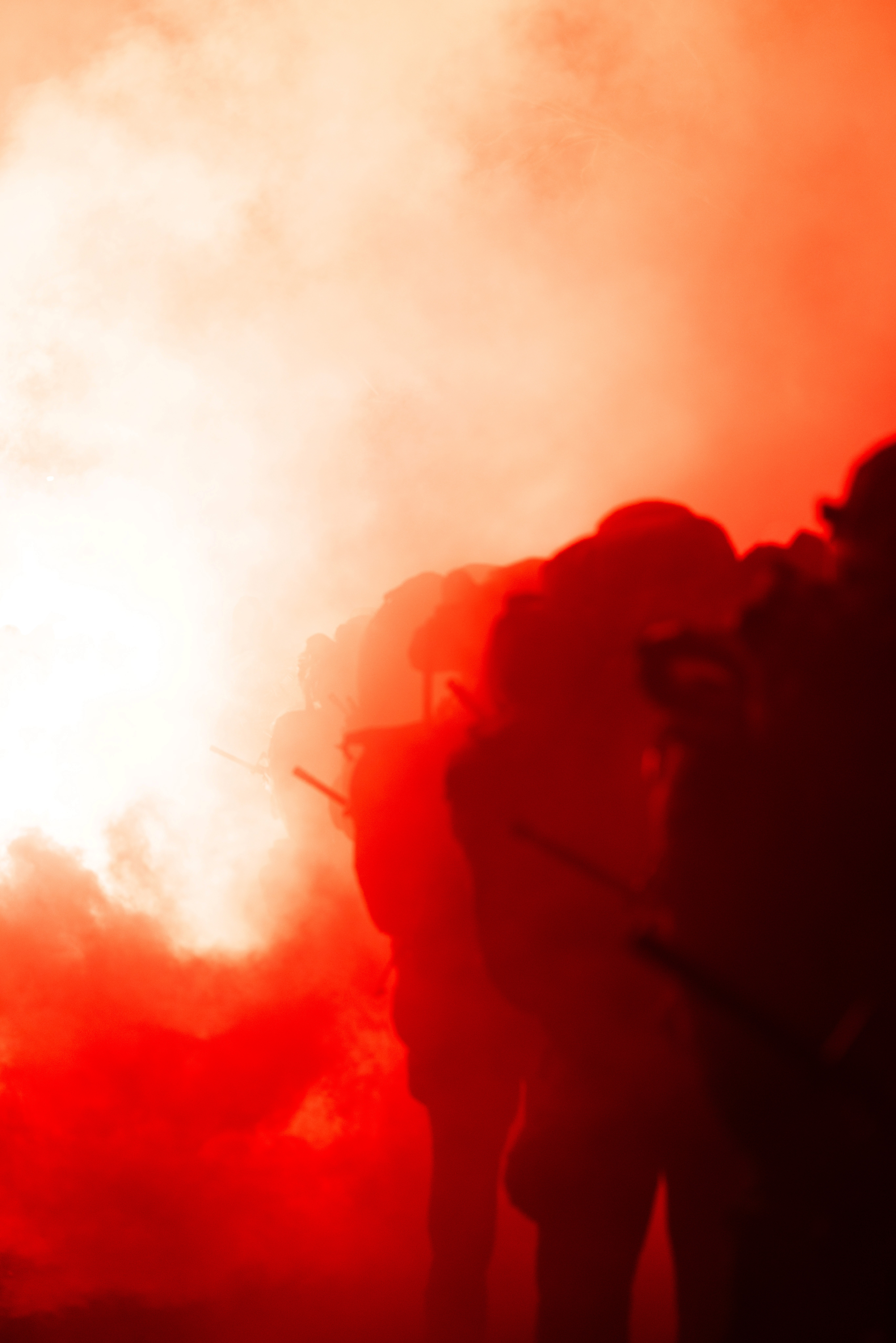 Voor mijn opleiding aan de fotovakschool werkte ik aan een vrij project binnen het thema samenwerken. Ik had de eer om een aantal keren met de Luchtmobiele Brigade mee te lopen. Wat ik aantrof was een wereld met een eigen ritme en mentaliteit. Verschillende mensen met ieder een eigen rol, maar altijd gericht op hetzelfde doel. Fysiek en mentaal wordt zwaar getest, maar uiteindelijk wordt samenwerken beloond met de rode duivel